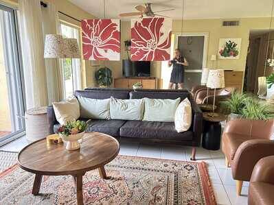 Condo à louer de modèle B (2 chambres et un boudoir), loin de la voie ferrée, juste en face du terrain de tennis et tout près de la piscine principale. Notre unité est située au rez-de-chaussée, bien décorée et confortable (tout est inclus) et très ensoleillée. Nous avons de la céramique au plancher, la télé en français, l'internet, BBQ Webber, table et 4 chaises de patio.